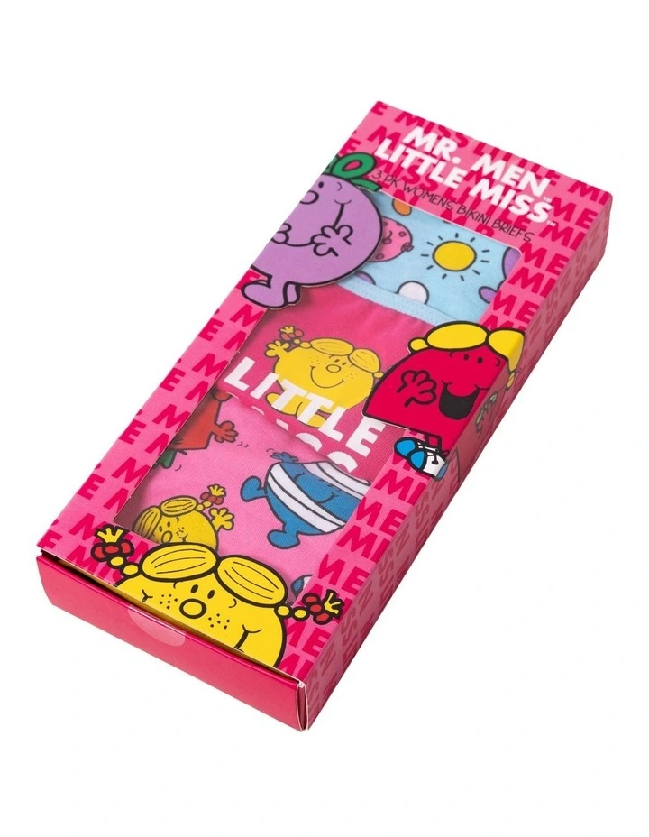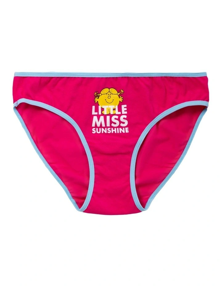 Shop these adorable Officially Licensed Women’s Little Miss Bikini Underwear 3 Pack. The briefs feature a placement print Little Miss Sunshine design and two all over Little Miss designs. These briefs are the perfect gift for any Little Miss fan!