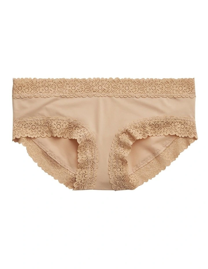 Pretty lace trims at leg openings and waistband