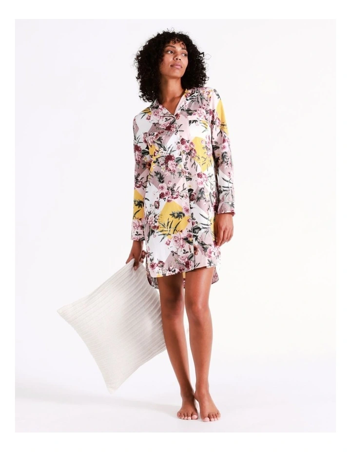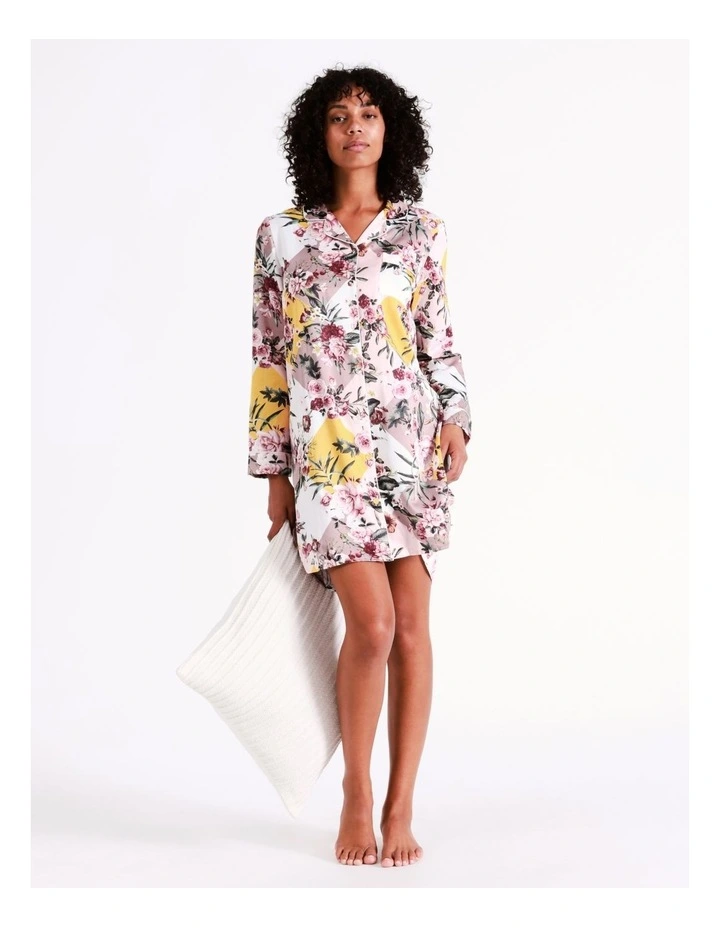 Chloe & Lola Selena Woven Cotton Nightshirt In Pink Houndstooth