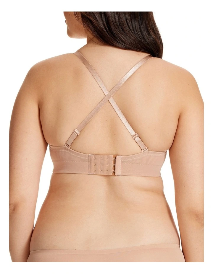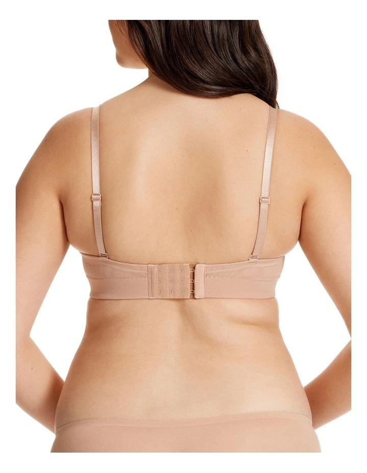 A full-coverage strapless bra with lightweight smooth cups and side boning for a sculpted fit. New elastic gripper technology allows a silicone-free secure fit.