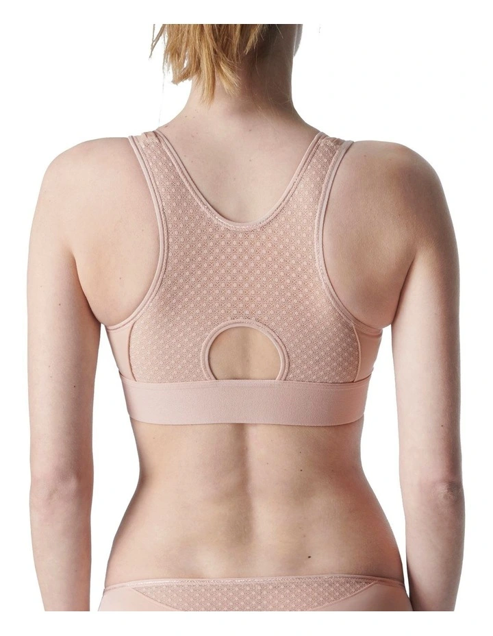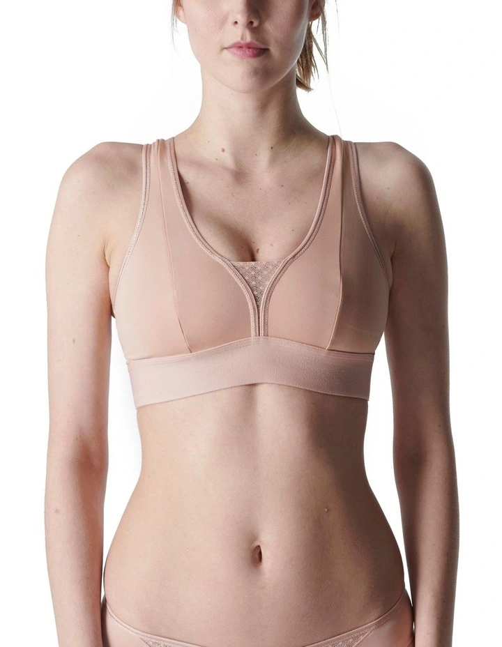 The Harmony Underwired Sports Bra, by Simone Perele, is a collaboration with French supercoach Lucile Woodward. Femininity meets strong support thanks to underwiring and touches of elastic lace. Available up to a G cup. – Cropped sports bra