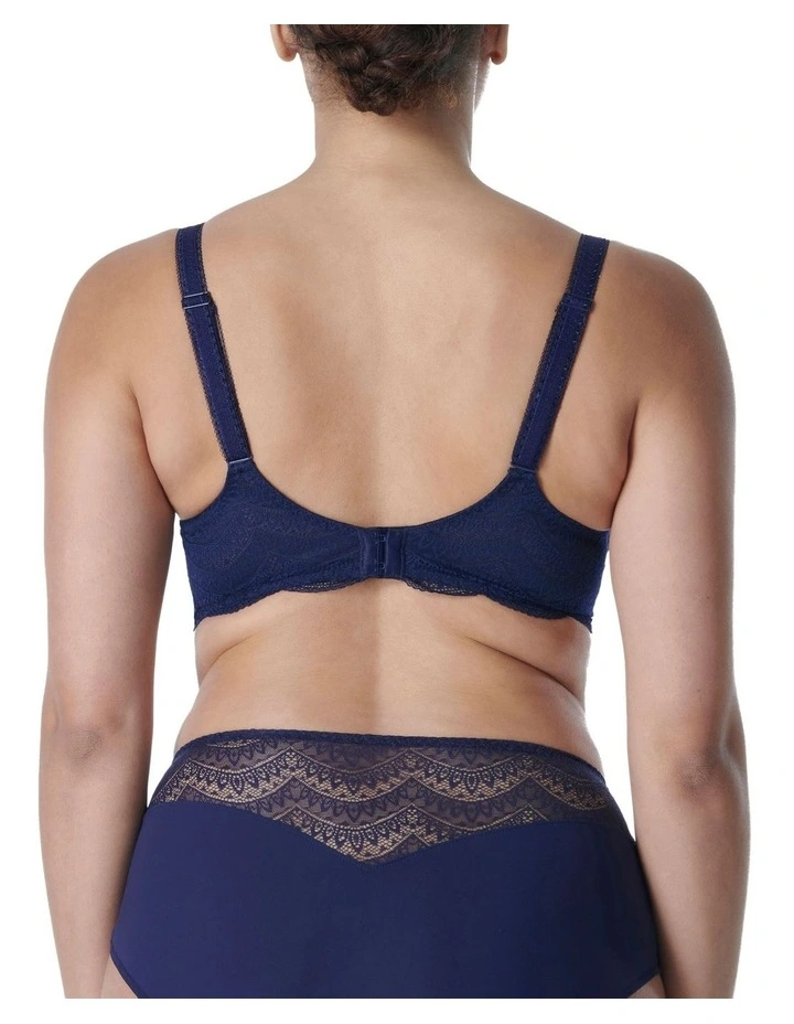 The Karma 3D Contour Bra, by Simone Perele, is an underwire bra pairing a rounded, natural bust shape and supportive structure with Italian Jacquard lace details to delicately frame the neckline.