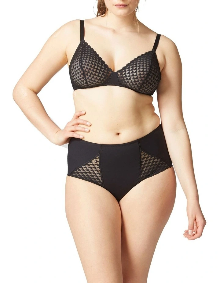 The Subtile High-Waisted Control Brief, by Simone Perele, uses control mesh, responsive knitted fabric and French lace to create body-shaping lingerie. Featuring tight-knit sculpting material against triangular laced slits at the hip, as well as clean-cut edging for a seamless look under clothing.