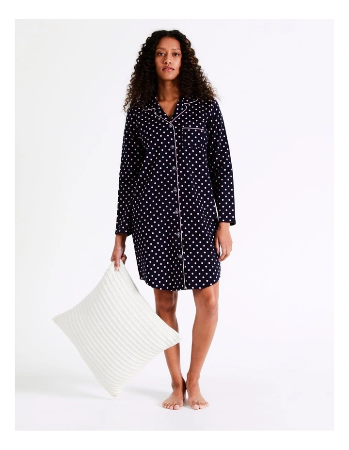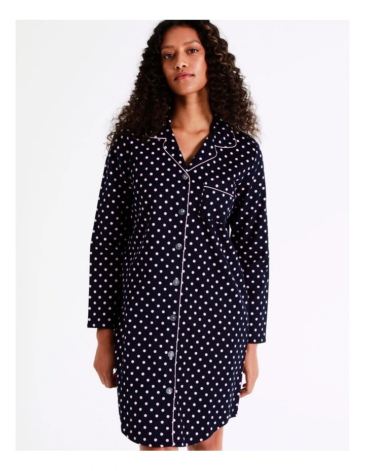 Soho Flannelette Nightshirt in Navy Spot