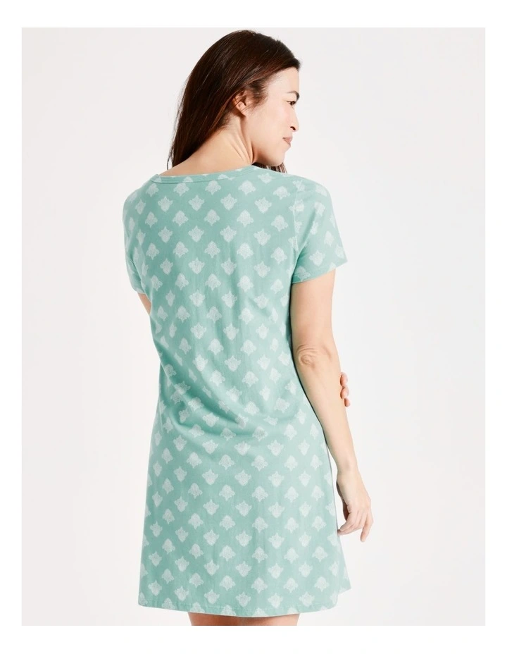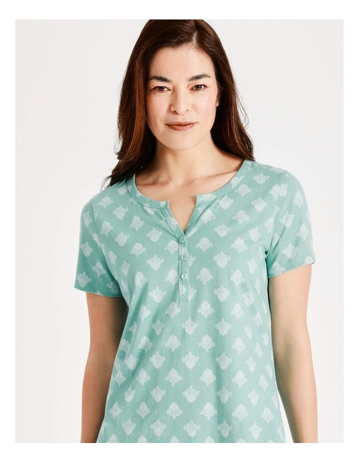 Soho Organic Cotton Short Sleeve Half Placket Nightie in Mint