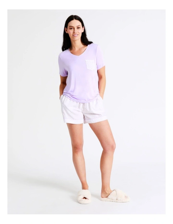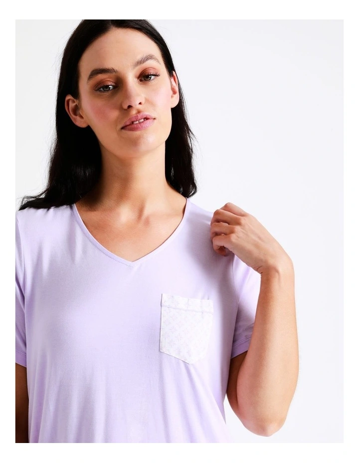 Soho V Neck Short Sleeve Tee With Pocket in Lilac