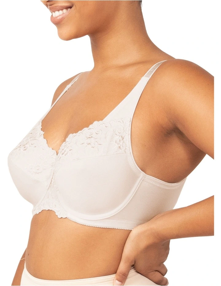 Triumph’s famous Embroidered Minimiser bra is engineered to reduce the bust by up to one cup size and gives full cup support.