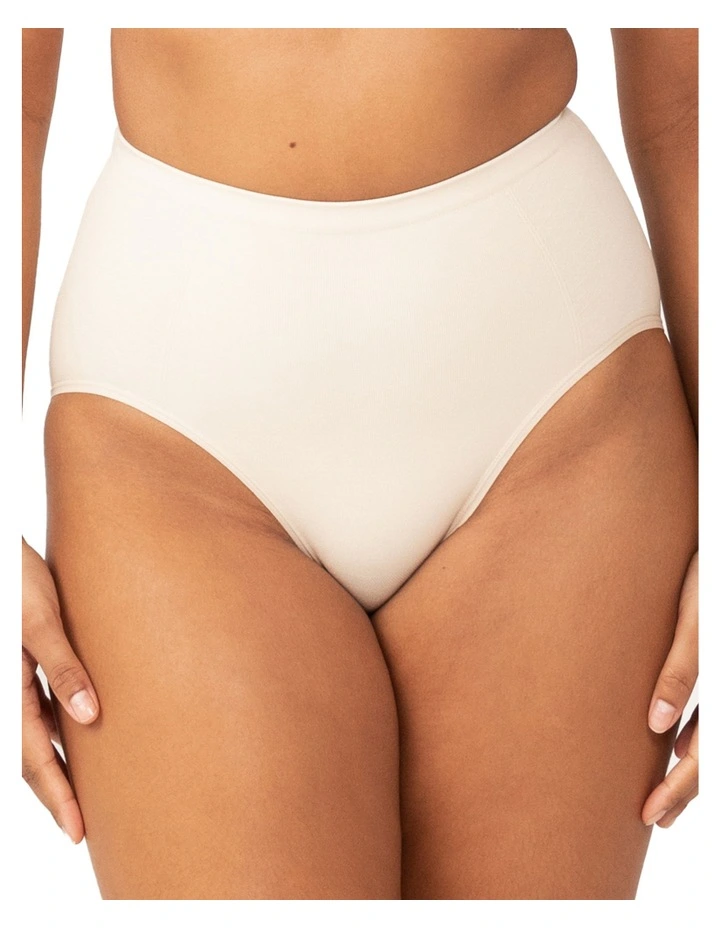 These Minimiser control briefs from TRIUMPH use circular knit technology allowing for a seamless finish to ensure a smooth and firm silhouette under your clothes. A panel at the front helps to tighten and flatten your stomach and the full brief cut that sits at your waist provides support all day long. Available in teint (nude) and black.