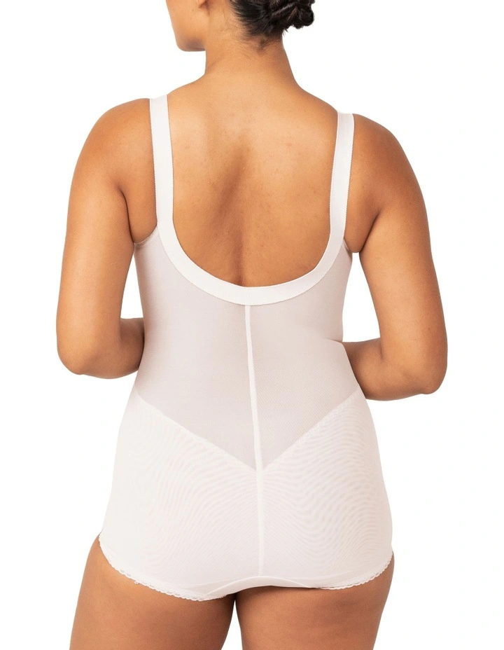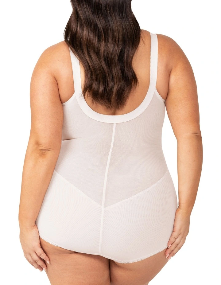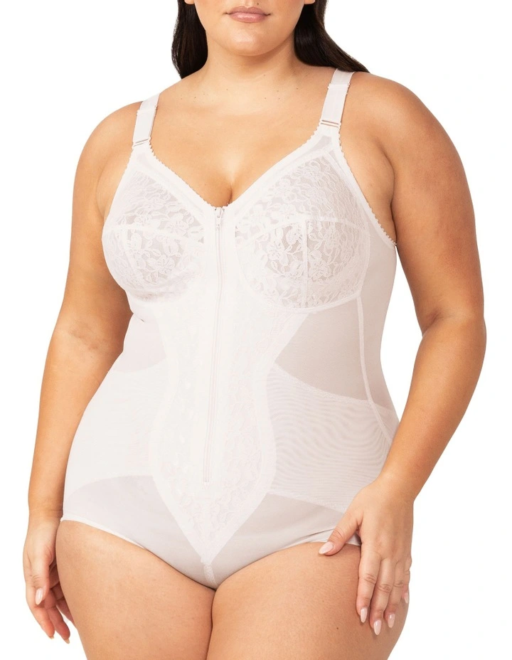 This Poesie bodysuit from TRIUMPH is for a fuller figure, and gives you ultimate control around your hips, waist, stomach, bottom, back and bust. Soft lace cups and a lace panel down the front centre make the Poesie feminine and pretty. Thick shoulder straps ensure comfort and the front zip closure is hassle free. Available in beige.